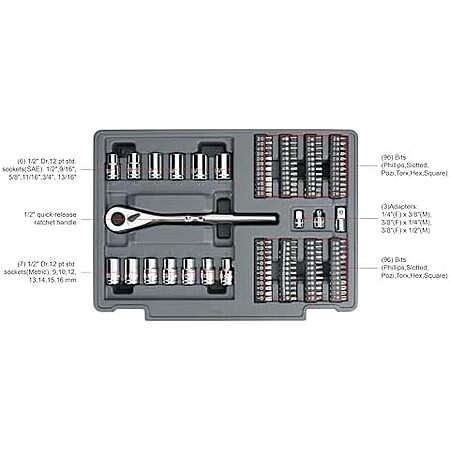 Model: Amazon Basics 287-Piece Mechanic Tool Set with Sockets, Ratchets & Wrenches - 3-Drawer Case