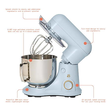 Powerful Mixing: Features a robust 300-watt mixing system and 12 optimal speed settings, capable of mixing up to 9 dozen cookies in its 5.3QT high-polished stainless steel bowl.