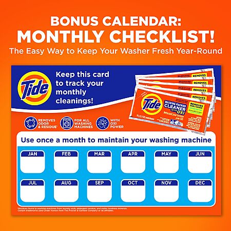 Tide Washing Machine Cleaner 52 Week Supply with Oxi for Front and Top Loader Washer Machines, Deep Cleaning Residue & Odor Eliminator, 12 Month Supply (Packaging May Vary) $16.99