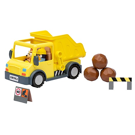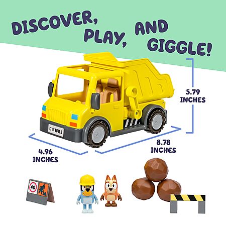 Bluey Dump Truck Toy Playset, Sturdy Working Toy Dump Truck with 2 Articulated Figures and 3 Huge Boulders, Construction Toys for Kids of Ages 3+ $9.49
