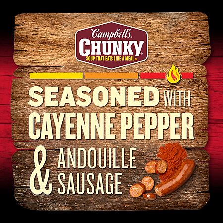 Product Description from Amazon:- Campbell's Chunky Spicy Chicken and Sausage Gumbo isn't just tasty—it's made to spice up your life. With mouth-watering, sizzling flavors and bold ingredients, this spicy soup is capable of fueling even the heartiest appetite. Campbell's Chunky Soup is bursting with flavor from hearty pieces of chicken meat with no antibiotics, Andouille sausage, okra, peppers and vibrant spices. Each can has 17 grams of protein. It Fills You Up Right. Enjoy this chicken gumbo soup on its own or poured over a bed of rice.
