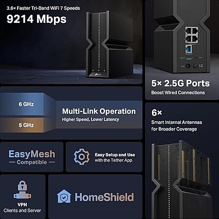 $176.97 | TP-Link BE9300 Tri-Band Wi-Fi 7 Router (Archer BE550) + 15% Back w/ Prime Visa Card at Amazon