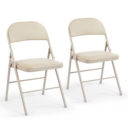 2-Pack DUMOS Folding Chairs with Padded Cushion (Kahki) for