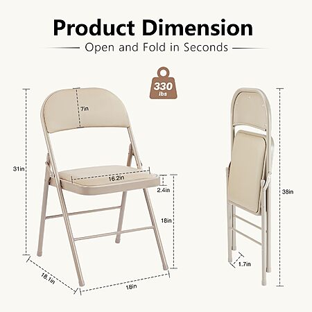 - EXCELLENT COMFORT- The backrest and seat cushion of the folding chair are padded with high-density foam to provide superior comfort for you or your guests. The high quality polyurethane leather used is great to touch, comfortable to sit on, soft and cozy, durable and easy to maintain.
