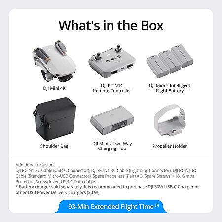 DJI Mini 4K Fly More Combo, Drone with 4K UHD Camera, 3-Axis Gimbal Stabilization, 10km Video Transmission, Auto Return, 3 Batteries for 93-Min Max Flight Time $309