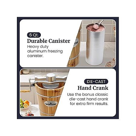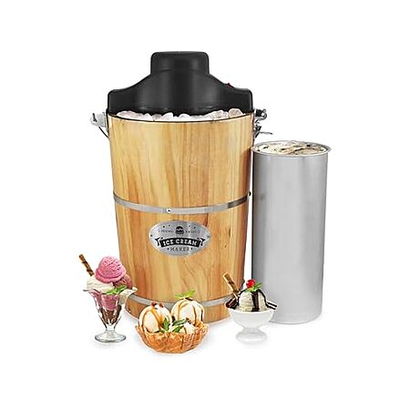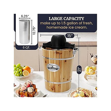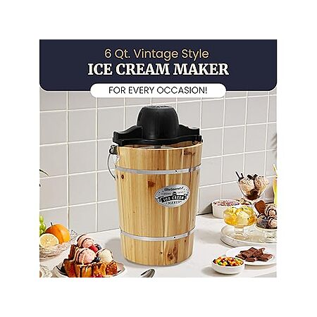 Woot! has Elite Gourmet EIM916X Old Fashioned 6 Quart Vintage Wood Bucket Electric Ice Cream Maker Machine Appalachian, Bonus Classic Die-Cast Hand Crank for Churning, Uses Ice and Rock Salt on sale for $64.99.