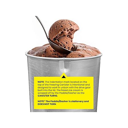 - CLEANUP IS EASY: The aluminum canister allows for easy wiping away of messes, cleanup afterwards is a cinch. Easily store leftover ice cream in your freezer, plus included is a see-thru lid that fits right on top of the ice cream canister. Dishwasher safe canister and lid.