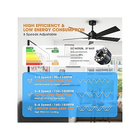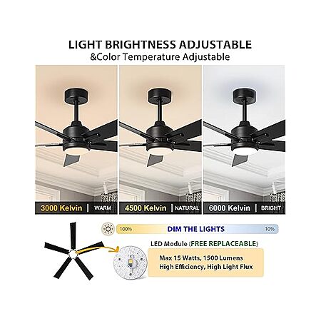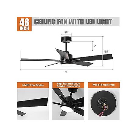 - Style: Modern Black Ceiling Fan with LED Light