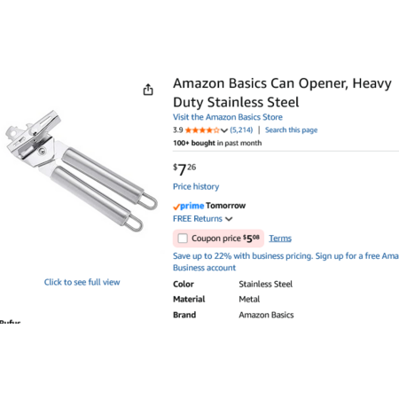 Amazon Basics Can Opener, Heavy Duty Stainless Steel. YMMV - Coupon Price $5.08
