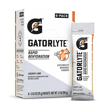 Amazon [amazon.com] has 6-Pack 0.52-Oz Gatorlyte Powder (Cherry Lime) 4 for $24.80 - $5 (multibuy discount) - 5% when you check out via Subscribe & Save = $18.56.