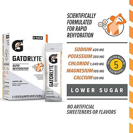 Model: Gatorade Gatorlyte Rapid Rehydration Powder Cherry Lime, 6 ct | CVS