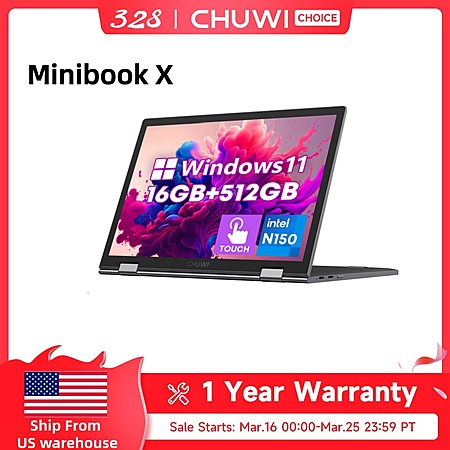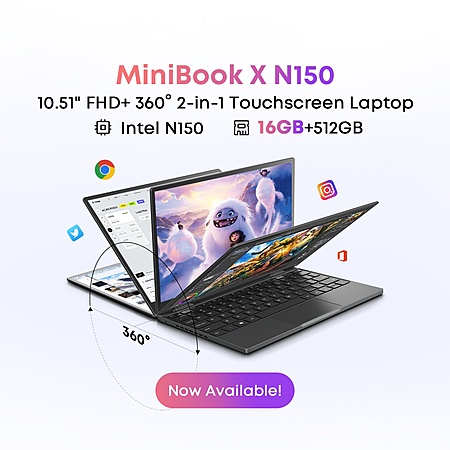 CHUWI Minibook X 2-in-1 10.51-inch Touch FHD 1200P Intel N150 16GB DDR5 512GB SSD Laptop $258 + Free Shipping