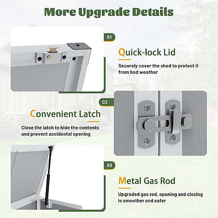 | Product Description: | 🏠Don’t let your patio become cluttered—organize it beautifully with the Enyopro Outdoor Resin Storage Shed. Crafted from high-quality double-walled resin panels using an upgraded blow molding process, this shed offers exceptional weatherproofing, UV resistance, and impact protection.With a spacious 41 cubic feet capacity, it provides ample room to store everything from trash bins and lawn tools to pool accessories and garden supplies, keeping your outdoor area neat and tidy.Equipped with hydraulic gas spring rods, the lid opens and closes easily, while a metal latch system allows you to secure your belongings safely. The waterproof sloped roof efficiently prevents rain accumulation, and the textured wood-grain finish makes it a perfect match for any patio or garden décor.Whether on your balcony, backyard, or garden, this outdoor storage shed brings durability, style, and convenience together in one sleek solution. ➤Why Choose Enyopro Resin Storage Shed This modern outdoor storage solution isn’t just about organization—it’s about protection, convenience, and design. With its all-weather durability, secure locking system, and smart hydraulic-assisted lid, it’s ideal for keeping your outdoor space neat and your belongings safe year-round. ➤Features 1. Weather-Resistant Material: High-density resin panels resist fading, rusting, and peeling for long-lasting performance. 2. Large Internal Space: 41 cu.ft interior fits two standard 32-gallon trash bins or multiple garden tools. 3. Hydraulic-Assisted Lid: Opens and closes smoothly, preventing slamming and finger injuries. 4. Lockable Metal Latch: Adds extra safety and protection for your stored items. 5. Grooved Sloped Roof: Prevents rainwater buildup and keeps contents dry. 6. Textured Design: Wood-like pattern enhances your outdoor décor while resisting dirt and stains. 7. Easy to Assemble: Comes with clear instructions and all necessary hardware for hassle-free setup. 8. Versatile Use: Perfect for backyards, patios, garages, or garden corners. ➤Specification - Product Name: Outdoor Resin Storage Shed - Material: Weather-Resistant Resin - Color: Gray - Capacity: 41 Cu.Ft - Overall Dimensions: 55.9"L × 29.5"W × 43.3"H - Net Weight: 65 lb - Opening System: Hydraulic Gas Spring - Lockable: Yes - Floor Included: Yes - Weather Resistance: UV-Proof, Waterproof, Impact-Resistant - Assembly Required: Yes - Package Includes: 1 × Resin Storage Shed, 1 × Instruction Manual 🏡 Large 41 Cu.Ft Capacity: Easily stores Garbage cans, garden tools, bikes, pool supplies, and outdoor cushions. 🏡 Durable Resin Construction: Double-wall blow-molded panels provide superior weather resistance, UV protection, and impact strength. 🏡 Hydraulic Gas Spring System: Effortlessly open and close the lid with upgraded gas rods for smoother operation. 🏡 Secure & Stable Design: Metal latch allows for lockable protection and prevents accidental openings. 🏡 Waterproof & Sloped Roof: Designed with a grooved top to drain rainwater efficiently, keeping contents dry and clean. 🏡 Stylish Wood-Grain Finish: Complements patio furniture perfectly, blending functionality with outdoor aesthetics. |