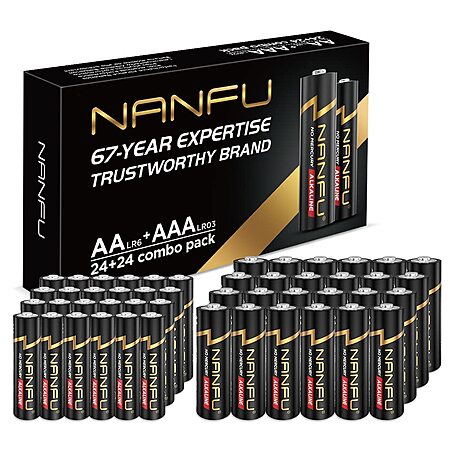 NANFU AA 24 + AAA 24 (48 total) 1.5V Alkaline Batteries $10 @ Amazon