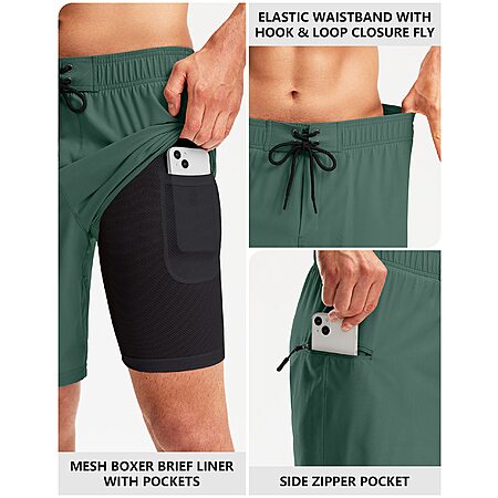 Pinkbomb Men's 9" Quick-Dry Swim Trunks w/ Compression Liner & Pockets (size S-4XL, Various Colors) $12.99 + Free Shipping w/ Prime or on $35+