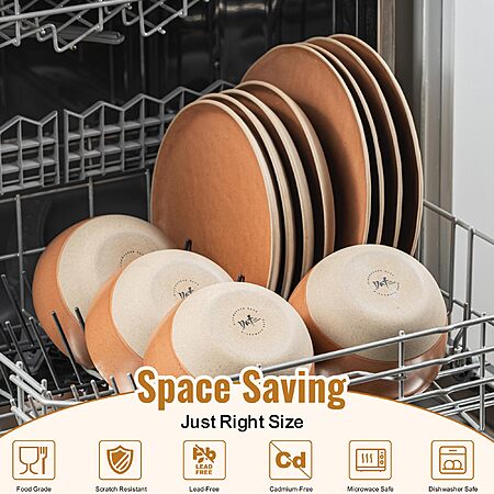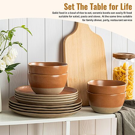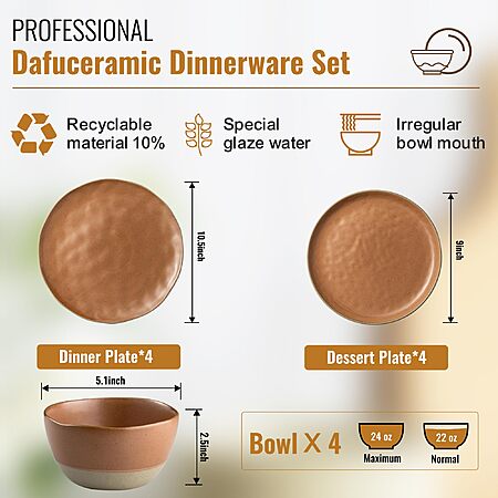 Dafuceramic 12 Pieces Dinnerware Sets,Plates and Bowls Sets, (Brownish Red) - $19.99