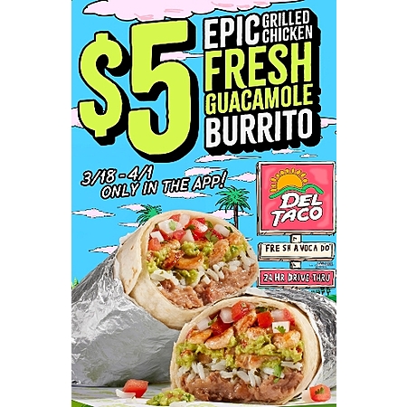 Del Taco: $5 Epic Grilled Chicken Fresh Guacamole Burrito