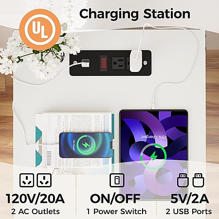 2-Pack RoyalCraft 25"H Nightstand Set w/ Charging Station (White) $89.59 + Free Shipping