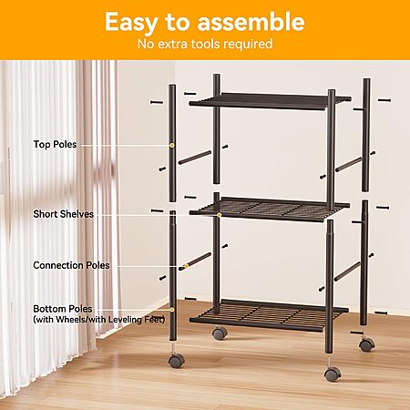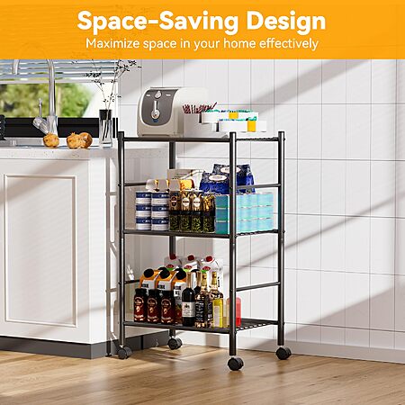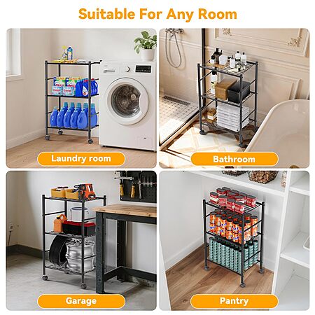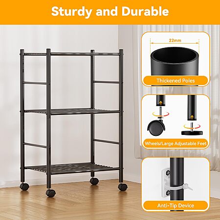 BolDuck 3 Tier Shelf Organizer Rack, Metal Shelving Unit with Wheels, 18.11" Wx12.6 Dx31.5 H - $17.99