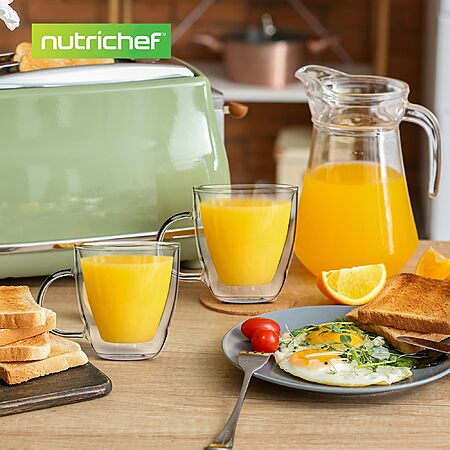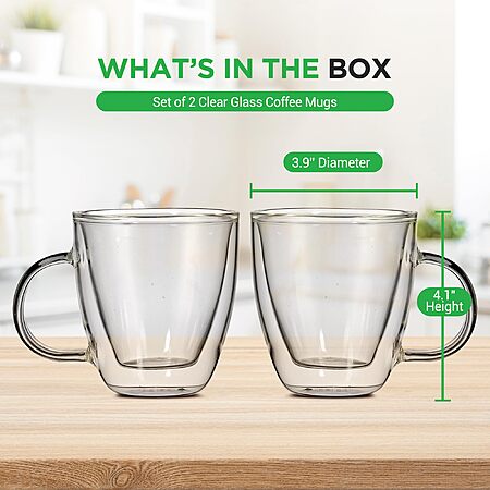 Model: NutriChef 5.2oz Clear Glass Coffee Mug Set - NGCOF702 - 2-Piece Hand-Blown Thermal Shock Resistant Glasses