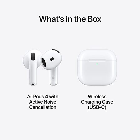 - ACTIVE NOISE CANCELLATION AirPods 4 with Active Noise Cancellation help reduce outside noise before it reaches your ears, so you can immerse yourself in what you're listening to.