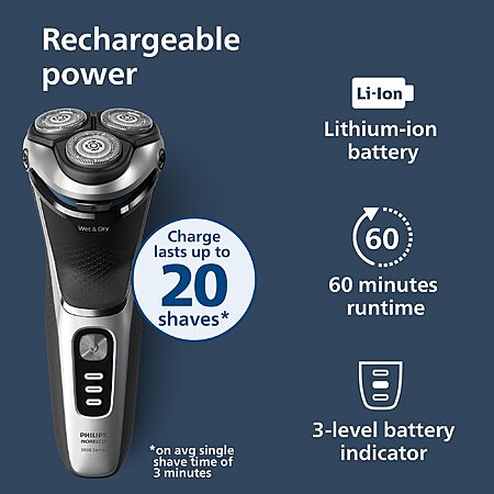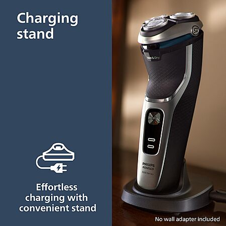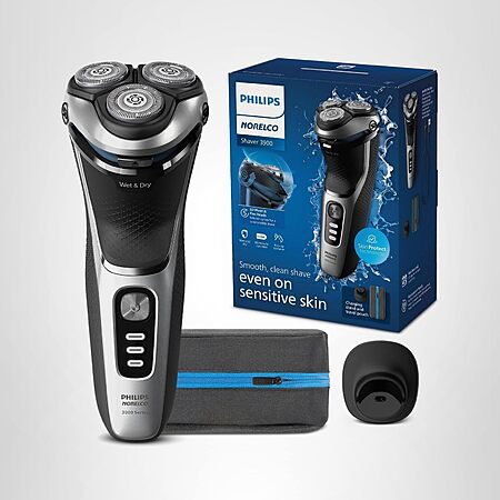 Philips Norelco Shaver 3900 Series, Wet and Dry Electric Shaver, P-Cap, Travel Pouch, Charging Stand, Storm Blue, Model S3341/92 $67.96