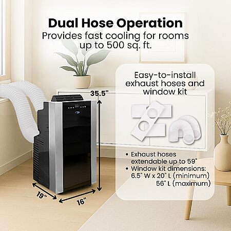 Whynter Portable Air Conditioner 14,000 BTU & Heater with Dual Hose Dehumidifier & Cooling Fan for 500 Sq Ft Rooms, Includes AC Unit Window Kit, ARC-14SH (9,200 SACC) $498.75