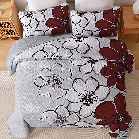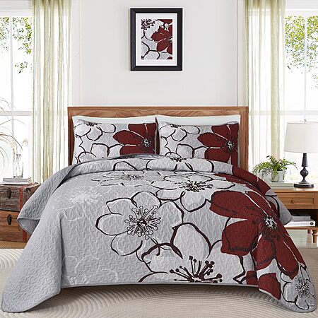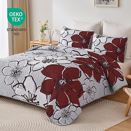 3-Piece Luxudecor Floral Quilt Set (Red, King) on sale for