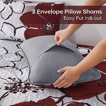 - 【Easy Care】Floral red quilt set not shrink easily and fit for machine / hand wash in cold. High quility fabric will feeling more cozy after each washed,just a little of detergent is enough, please do not bleach.