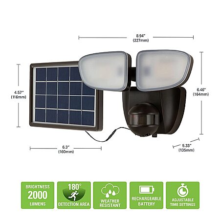 Halo Bronze Solar Outdoor LED Twin Head Flood & Security Light (180 Degree Motion Sensor, 2000 Lumens) $28.20 + Free Shipping w/ Prime or on $35+
