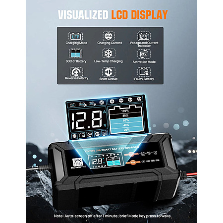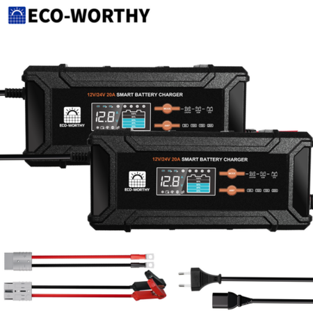 2-Pack ECO-WORTHY 12V/24V 20A Lithium LifePO4 Smart Battery Charger Maintainer $76 + Free Shipping