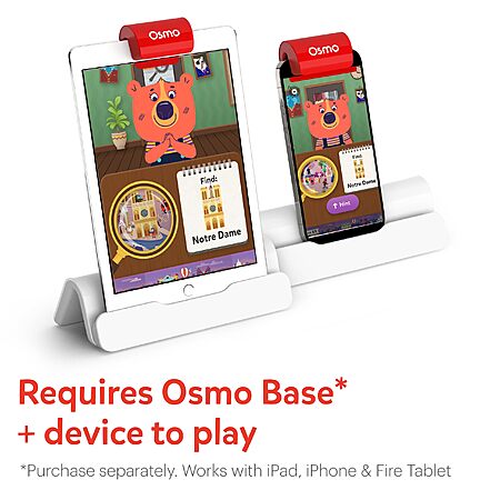 - OSMO IS MAGIC: Fun-filled & award winning learning games. Children interact with actual hand held pieces & an iPad or Fire Tablet, bringing a child's game pieces & actions to life (No WiFi necessary for game play). Osmo Base and iPad/Fire Tablet not included, required for game play. Actual product packaging may vary from the image displayed. Components within the box remain the same.