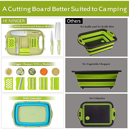 13" x 9" Hi Ninger 9-in-1 Collapsible Camping Cutting Board w/ Colander and Cutting Accessories from $11.11 + Free Shipping w/ Prime or on $35+