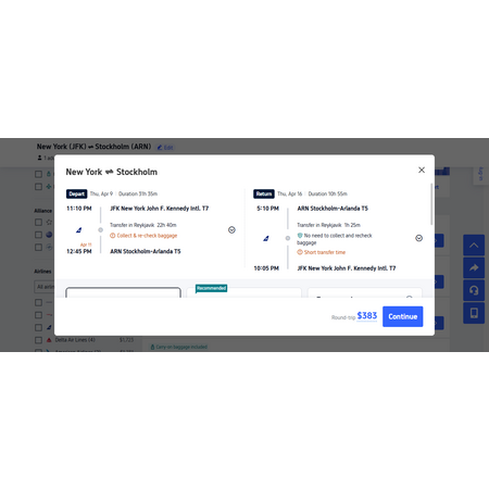Icelandair via Trip.com have round trip airfares travelling from New York (JFK) to Stockholm Sweden (ARN) for $383, making 1 stop. Outbound flight makes a 22 hour stopover in Iceland so plan ahead. These are economy light fares that allow a personal item and a carry-on bag. There is no seat selection and no change.