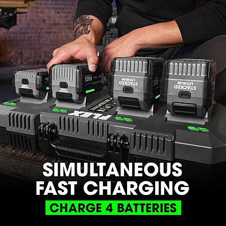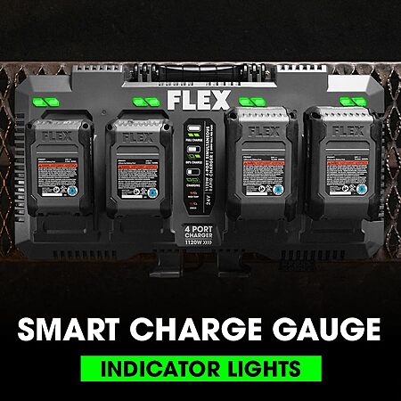 - SIMULTANEOUS FAST CHARGING - Fully charges four batteries at the same time at 280W per port in 30 minutes* *Based on charging time of FLEX 2.5Ah and 5.0Ah batteries