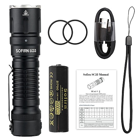 Sofirn SC33 XHP70.3 HI 5200 lumens 21700 USB-C Rechargeable Tactical LED Flashlight, 6000-6500K,