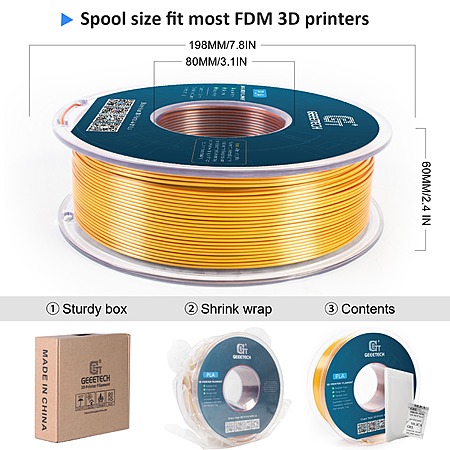 Geeetech 5Kg Tri-Color Silk PLA 3D Printer Filament 1.75mm Precise Tangle-Free $42 + Free S&H $42.2