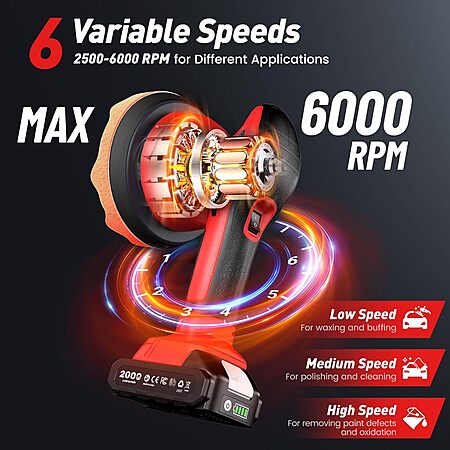 Prime: 6" Avhrit 21V Cordless Car Buffer Polisher Kit w/ 2x 2000mAh Batteries & Charger $32.99 + Free Shipping