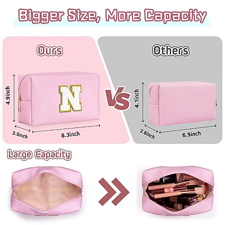 TOPEAST Preppy Personalized Initial Cosmetic Bag w/ Zipper $4.99 + Free Shipping w/ Prime or on $35+