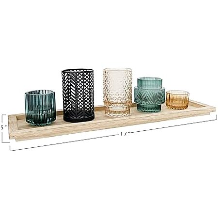 Model: Bloomingville Embossed Glass & Metal Tealight/Votive Holders on Rectangle Wood Tray (Set of 6 Pieces)