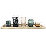 Amazon[amazon.com] has 6-Piece Bloomingville Embossed Glass & Metal Tealight/Votive Holders on Rectangle Wood Tray for $10.49. Shipping is free with Prime or on $35+ orders.