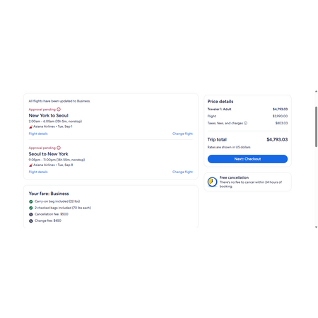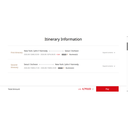 Asiana Airlines and Expedia have round trip business class airfares, with lie-flat seats, complimentary gourmet Korean/Western meals, fine wines, and attentive service including lounge access, priority services, and plush bedding travelling from New York (JFK) to Seoul Korea (ICN) for $4793, nonstop. You're also allowed a personal item, a carry-on bag and 2 free checked bags.