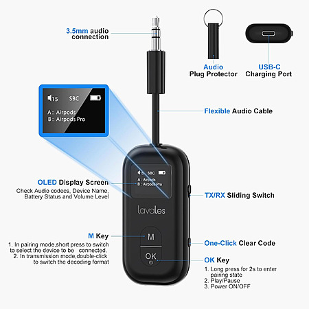 LavalesDirect via Amazon 1Mii SafeFly Pro 3.5mm to Bluetooth 5.3 Transmitter Receiver on sale for