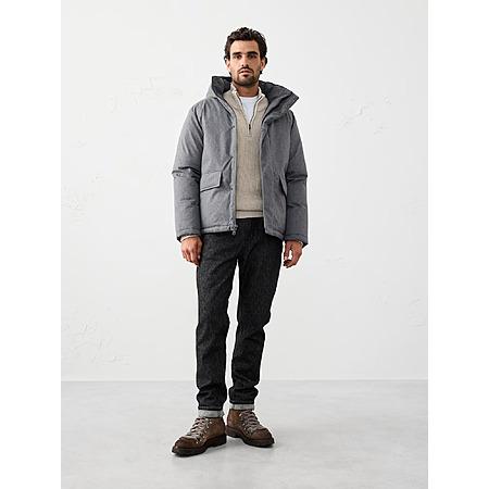 Banana Republic Factory Men's Hooded Puffer Jacket (Grey Herringbone) $22.98