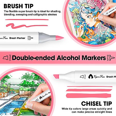 52-Colors VigorFun Pastel Dual Tip Artist Brush & Chisel Tip Paint Marker Pens $12.49 + Free Shipping w/ Prime or on $35+