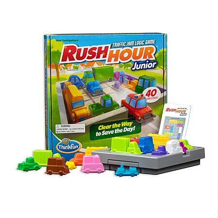 - What you get -Rush Hour Jr. is the junior version of the world-famous Rush Hour game. Includes Ice Cream Truck, Traffic Grid, 40 challenge cards, 15 blocking vehicles & a game-go bag. A fun STEM toy and great gift for kids age 5 and up.