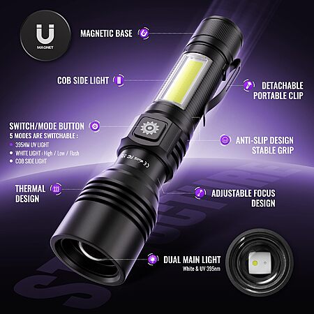 DARKDAWN 3 in1 Flashlight w/ UV + Side Light $9 @ Amazon