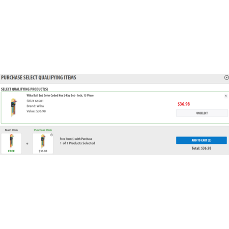 [Acme] Wiha Ball End Color Coded Hex L-Key Set - Inch, 13 Piece + FREE Metric Set - $36.98