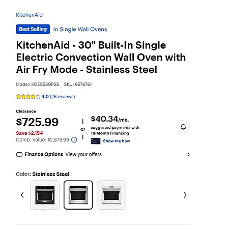 KitchenAid - 30" Built-In Single Electric Convection Wall Oven with Air Fry Mode - Stainless Steel $725.99 at Best Buy YMMV