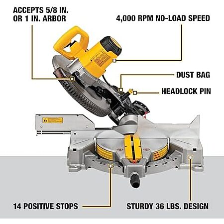 Model: DEWALT 15 Amp Corded 12 in. Single Bevel Compound Miter Saw